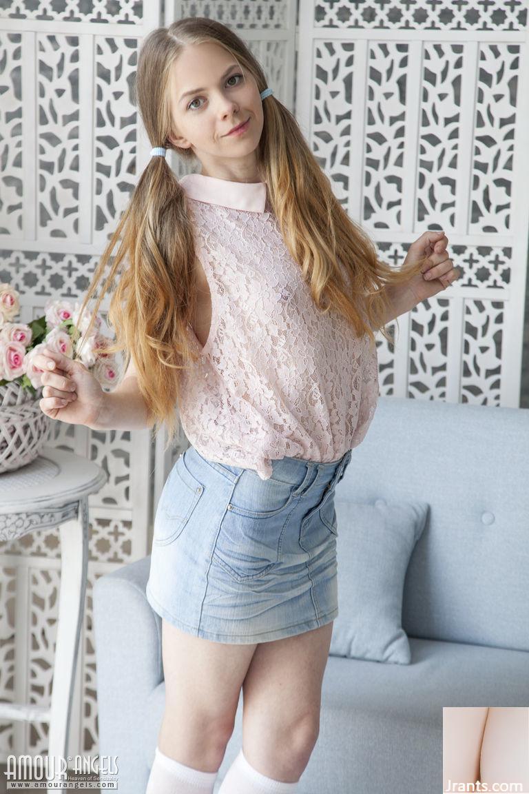 青白い赤毛のナスティシュカは、十代の体を披露しながら髪をおさげにしている (20P)